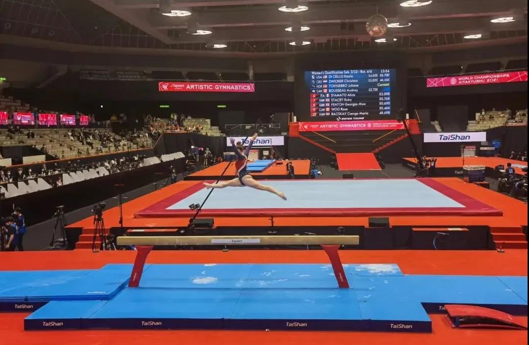 第50届世界体操锦标赛于2021年10月18-24日在日本北九州市举行,作为本届世锦赛官方器材供应商和赛事服务商,泰山体育为本次大赛提供世界上首创并唯一通过国际认证的碳纤维新材料体操器材和精准保障服务,助力体操运动员在比赛中高水平发挥。