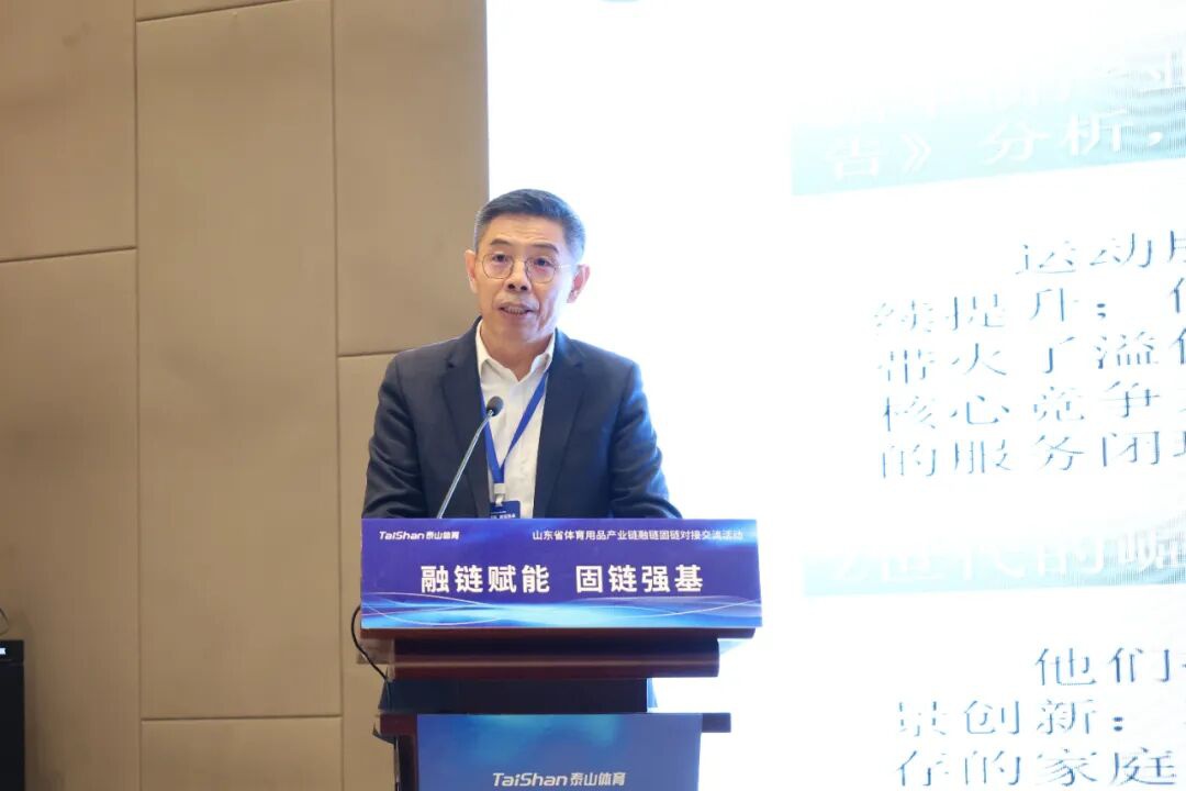 活动中,泰山体育产业集团总裁卞笑男以《乘势而上・链动未来》为题,深入分析了体育用品产业发展趋势。集团常务副总裁卞志勇系统介绍了企业近50年发展历程,从体育用品作坊成长为服务8届奥运会的国际顶级赛事服务运营商。集团旗下各子公司负责人分别就体育器材、瑞豹自行车、人造草坪等产品线进行了供需发布,展现了企业在体育用品全产业链的布局实力。