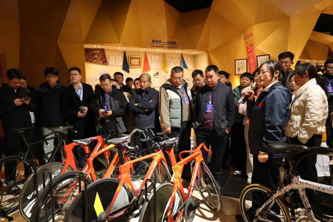 参会代表前往泰山体育产业集团开展实地考察,依次参观了泰山体育博物馆、瑞豹自行车生产工厂、人造草坪生产工厂及气膜体育公园。在博物馆内,代表们通过丰富的历史展陈深入了解企业从手工作坊到国际品牌的奋斗历程;在瑞豹自行车工厂,先进的碳纤维制作工艺和严谨的品控体系展现了企业在高端装备制造领域的实力;人造草坪生产线展示了新材料研发与智能化生产的深度融合;气膜体育公园则生动体现了泰山体育将装备制造与体育服务相衔接的产业链延伸优势。通过现场参观,与会代表对泰山体育的全产业链布局与创新实践有了更直观深刻的认识。