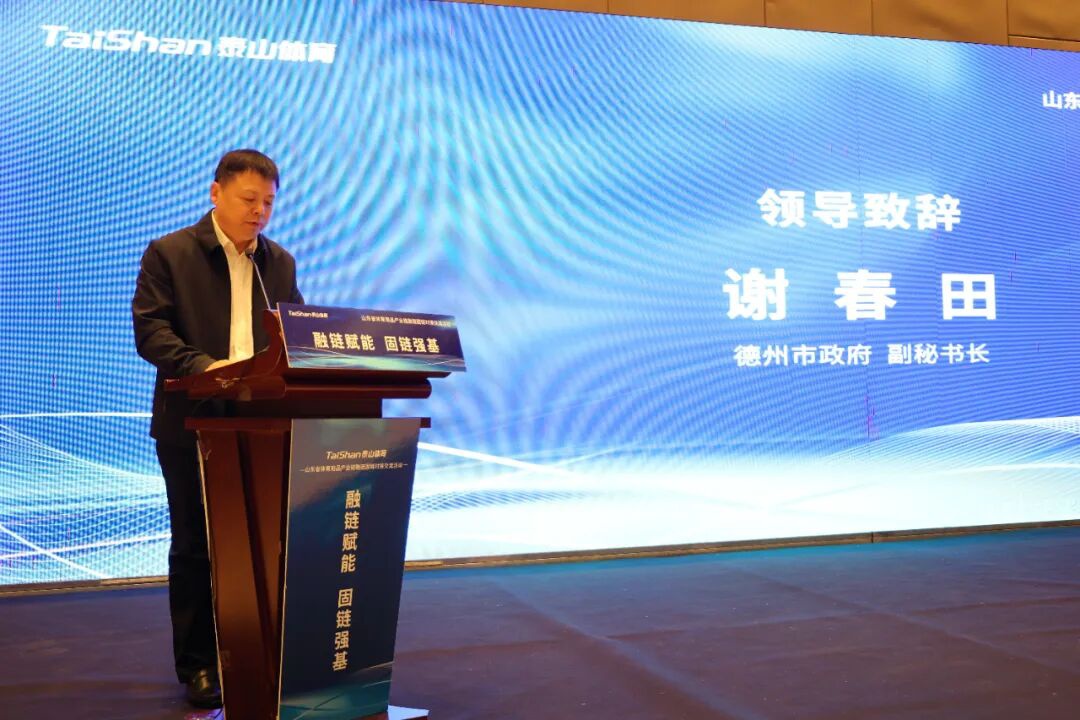 11月19-20日,由山东省工业和信息化厅指导,山东省五金与衡器行业协会承办的全省体育用品产业链融链固链对接交流活动在乐陵市成功举行。活动以"融链赋能 固链强基"为主题,旨在贯彻落实全省"十链百群万企"融链固链工作部署。泰山体育产业集团作为链主企业,在活动中充分展现了其行业引领作用和全产业链优势。