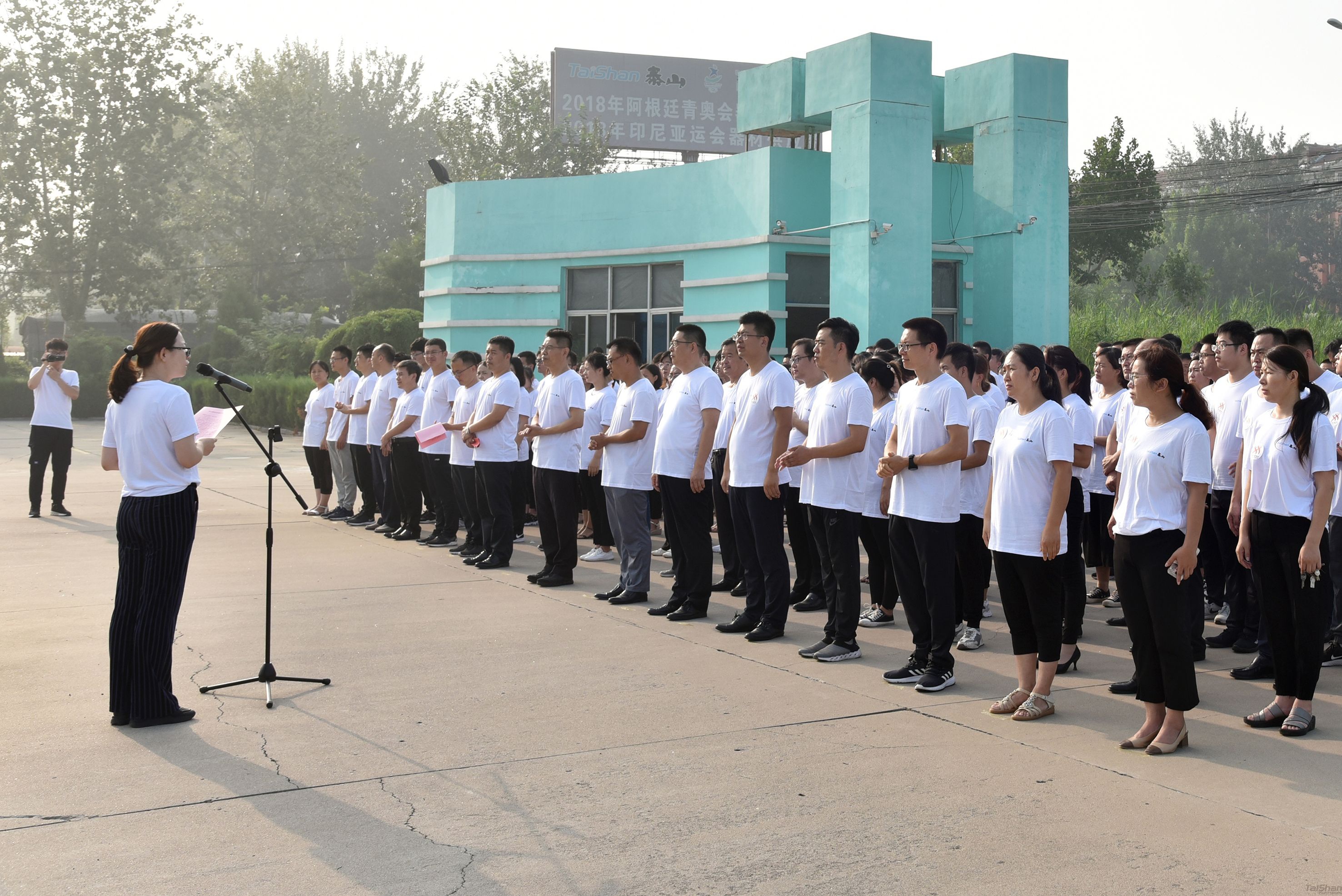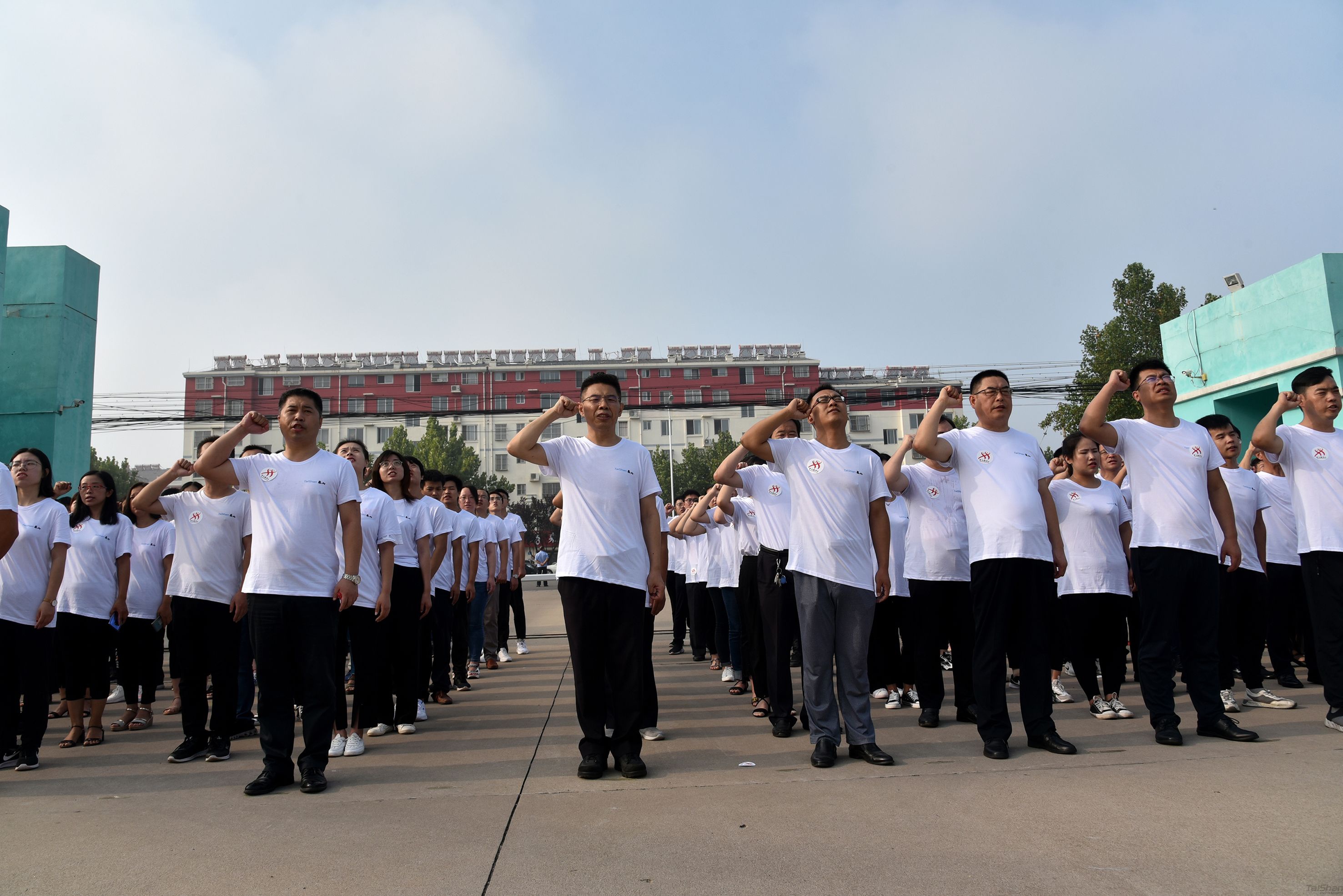 凝望鲜红的国旗,泰山体育人庄严宣誓:“我是泰山人,我热爱祖国,热爱中国共产党,热爱体育产业,坚持脚踏实地,把握机遇,锐意进取,创造奇迹的企业精神,不忘初心,牢记使命,爱岗敬业,勇于担当,立足岗位做贡献,同心同德谋发展,齐心打造泰山体育品牌,共筑健康中国梦!”