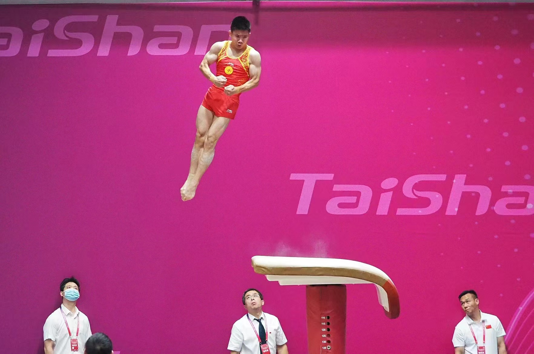 今天,全国体操团体锦标赛共举行了男子资格赛暨单项团体决赛的两场决赛。