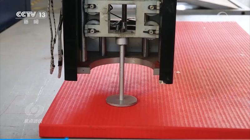 泰山体育的科研人员正在实验室内用智能落锤冲击试验机,对垫子的回弹、下陷、冲击力等数据进行测试,正是有了这一组组精密的数据,产品品质才得以保证。而在企业的初创期,用这样精密的仪器检验产品质量是卞志良想都不敢想的,他至今还记得当年的艰辛,为了检验体操落地垫的安全性和弹性,他用了一个土办法,从自家房顶上往垫子上跳,跳下来时,还崴了脚,钻心地疼。