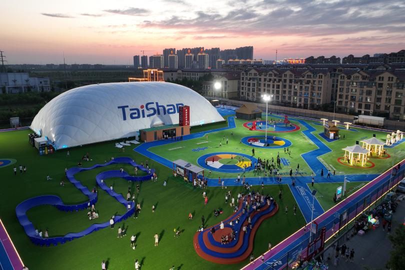 整个顶目建筑,根据不同分区的用户需求和体验,在场地铺设上,均采用泰山新材料功能人造草铺设,例如健身步道搭配铺设负离子草、跑道草,休闲景观草等,不同运动场地铺设篮球草、网球草、羽毛球草等,在儿童落戏区铺设儿童运动草、卡通图案草、搭设茅草屋等,全方位保证运动安全和环保。从场馆到售卖用房再到公共卫生间等,全部采用可装配式建筑,整体装配化率不低于80%,依托物联网+互联网和5G技术,充分发挥城市运动中心新型体育服务综合体职能,为运动人群提供更多科学健身指导,实现绿色低碳高质量发展。