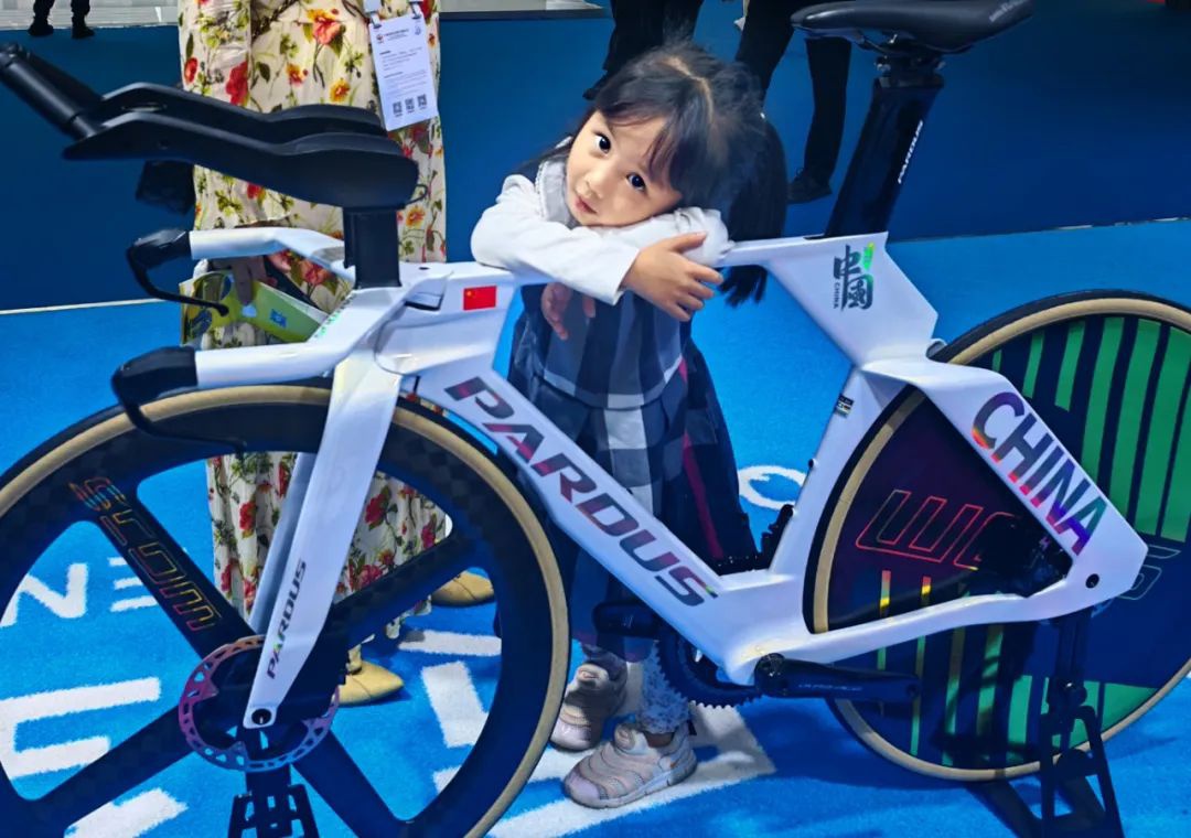 在消博会泰山体育展区,一位4岁的小女孩趴在一辆为2028年洛杉矶奥运会设计的自行车上,久久不愿离开。这辆自行车洁白的车身上印着“中国”字样和炫酷的图案,尽显科技与运动的魅力。小女孩充满好奇地探索着,这一画面不仅洋溢着童真,更展现了奥运科技与大众的奇妙融合,也体现了本届消博会泰山体育对普通大众的期待与关注。